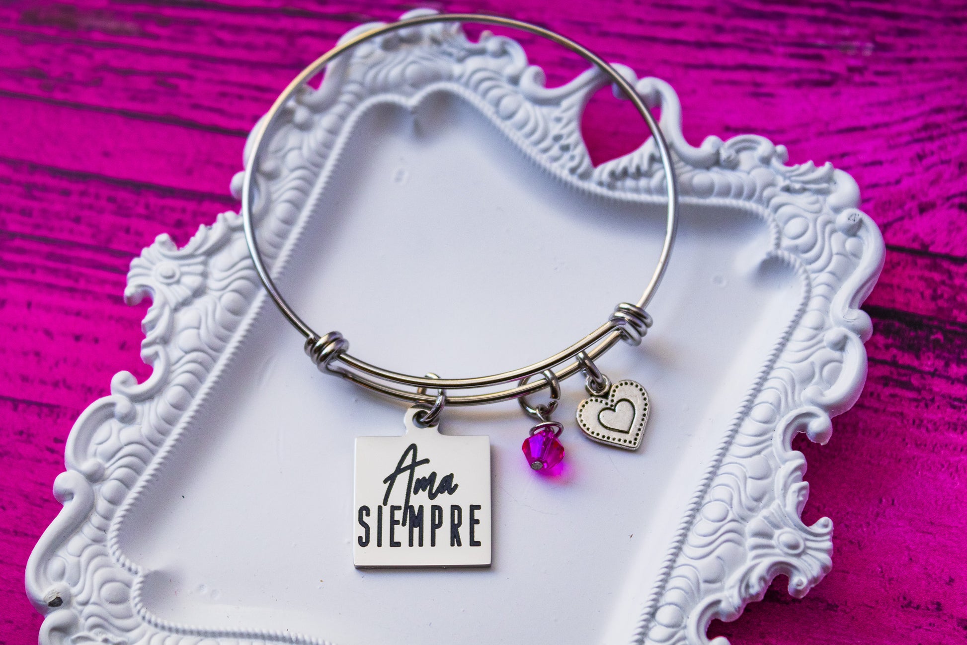 Visit the front page of my shop to see the various add on's available and upgrades. You will find a large range of available options from Stainless steel bangle and chain upgrades, to engraved charms, natural stones, pearls, extra crystals and initials. Everything you need to make your purchase totally unique