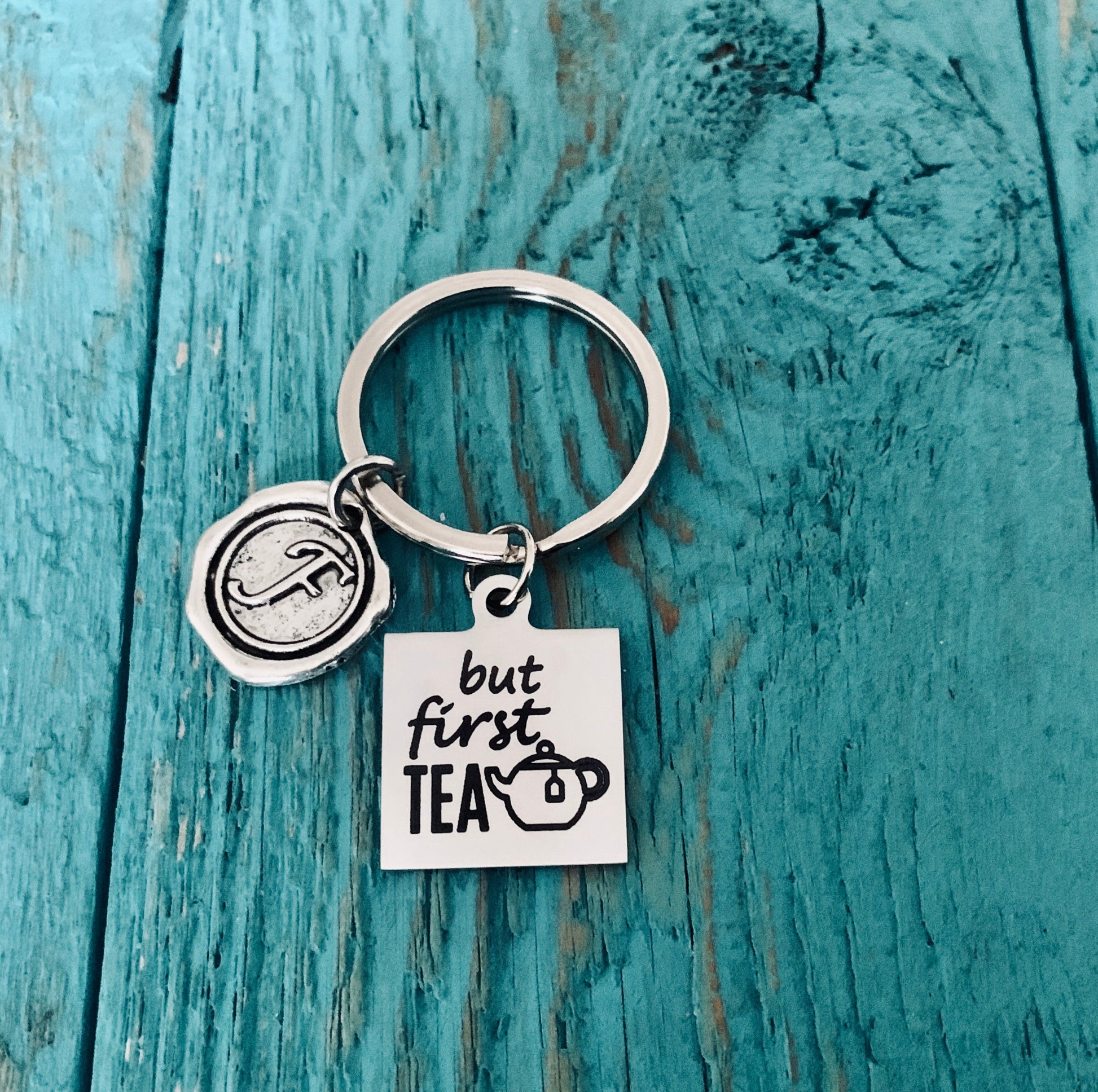 ✿ 20mm Stainless steel engraved charm, Wax seal Initial