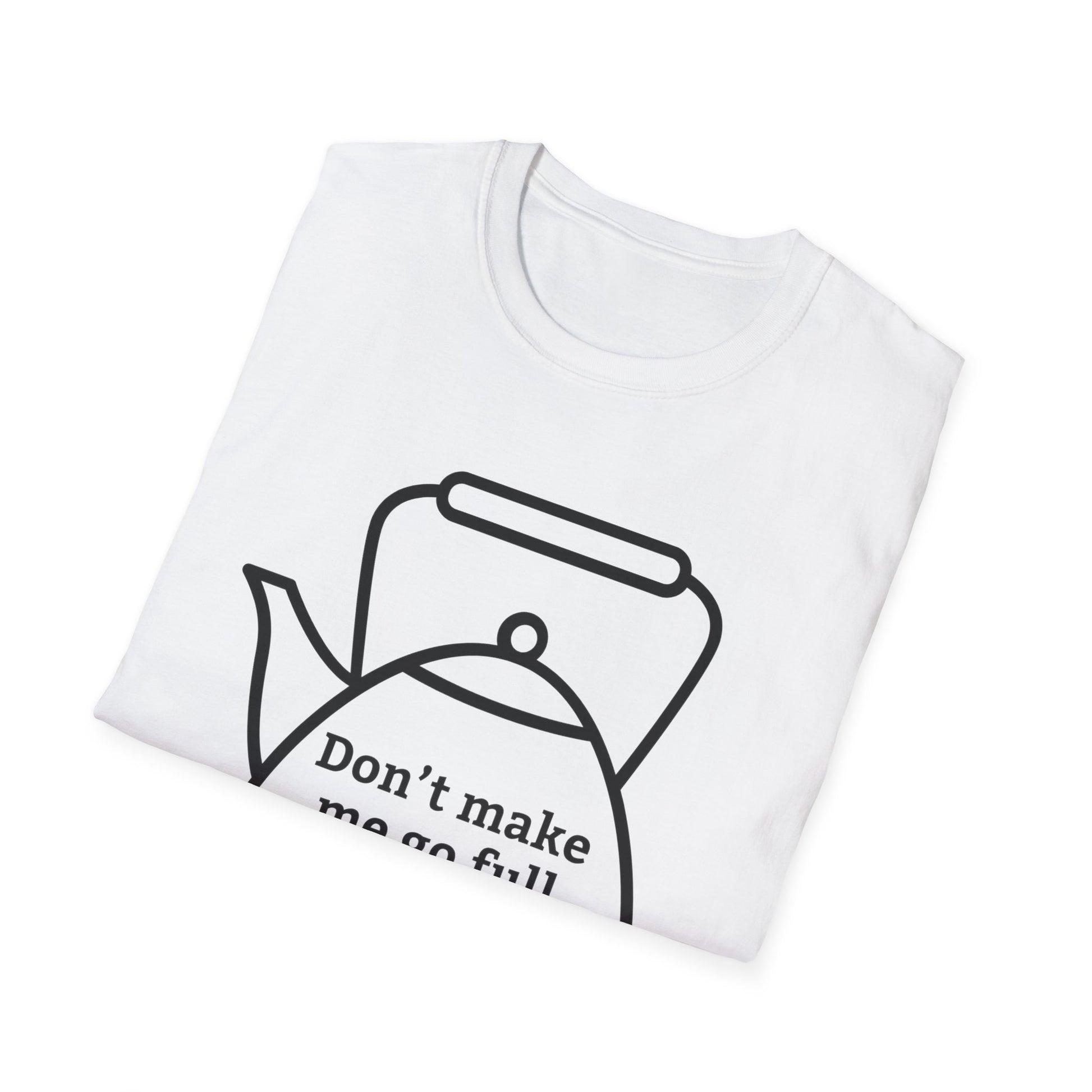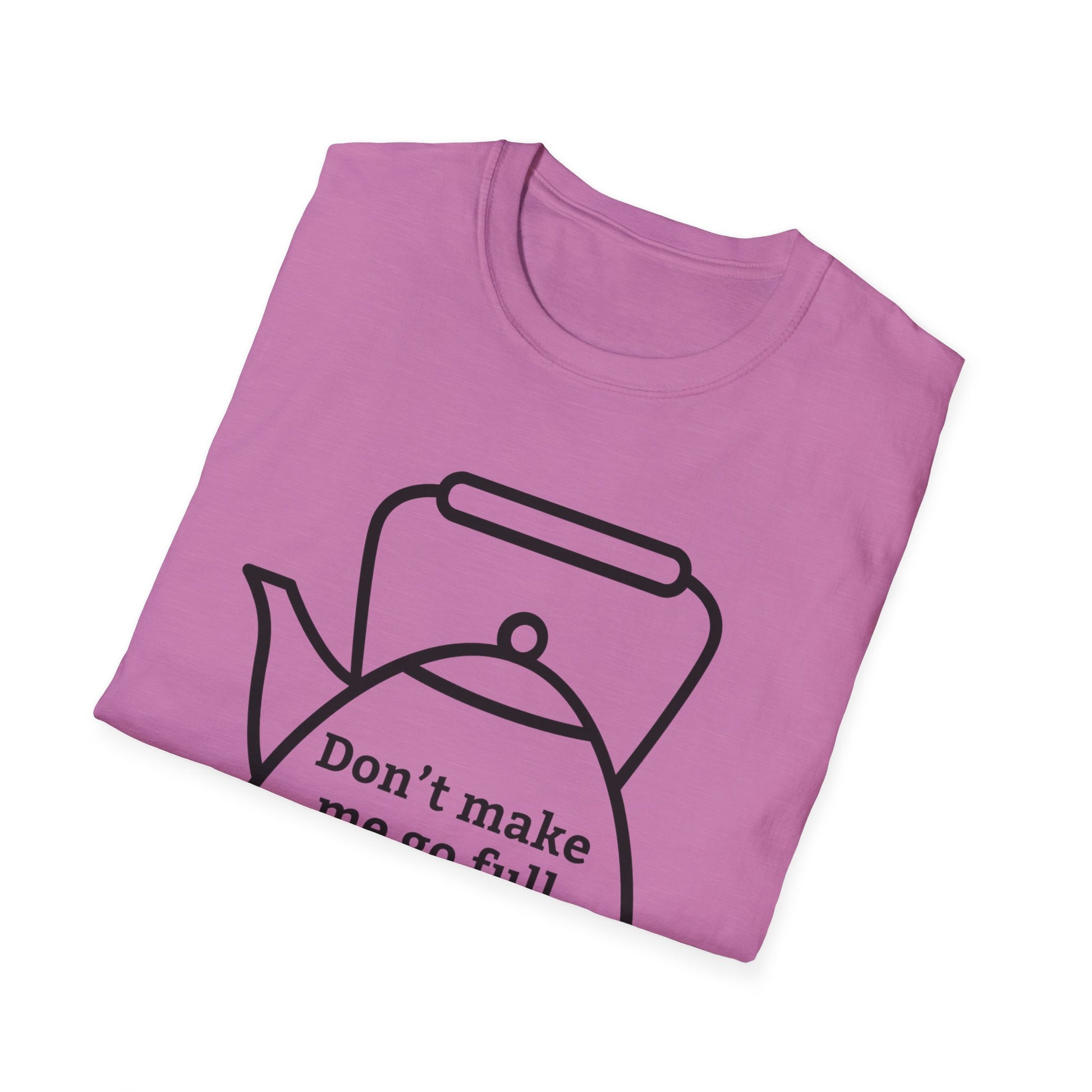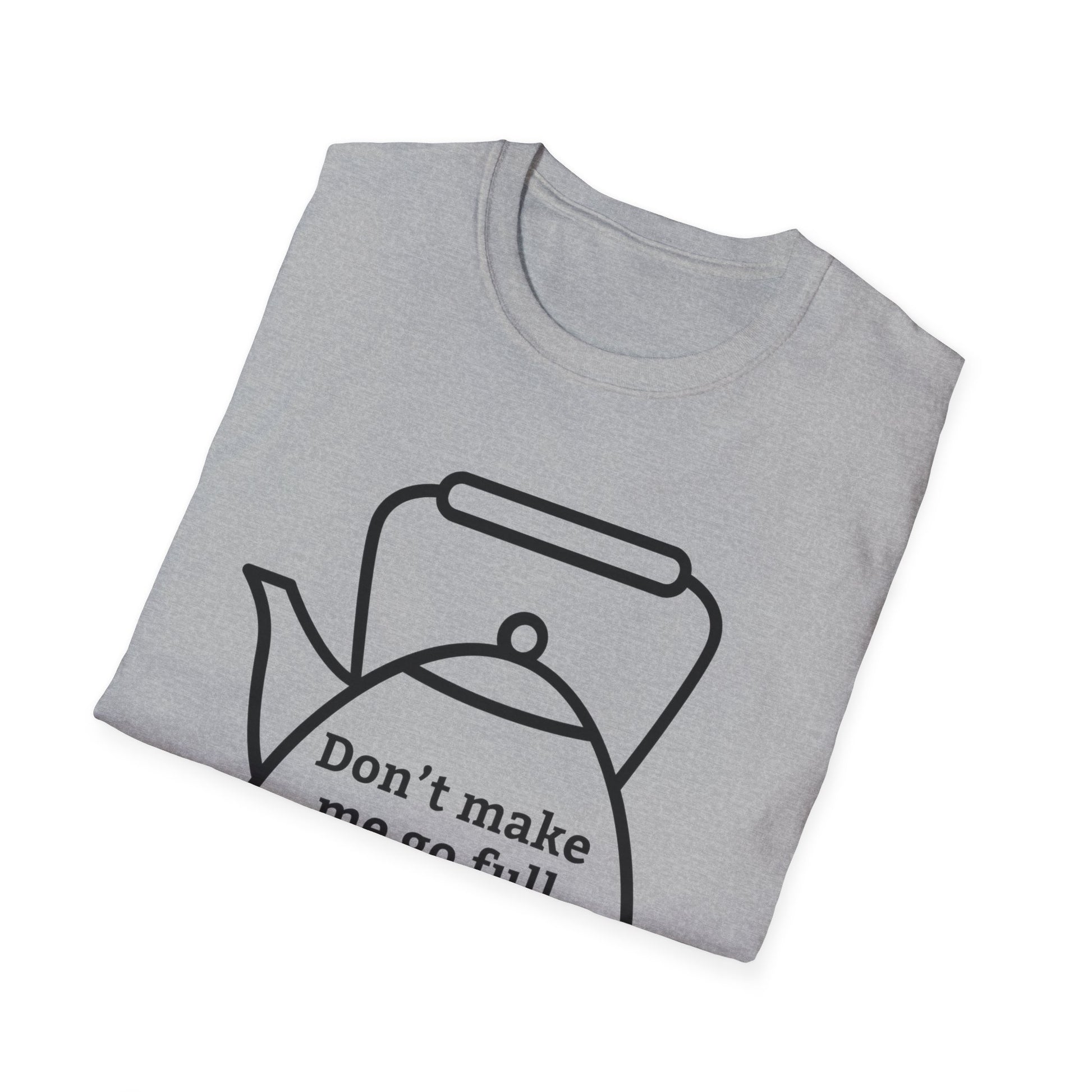 Funny Kettle Tee: Don’t Make Me Go Full Kettle On You T-Shirt, Humorous Gift for Tea Lovers, Unisex Casual Wear, Gift for Friends