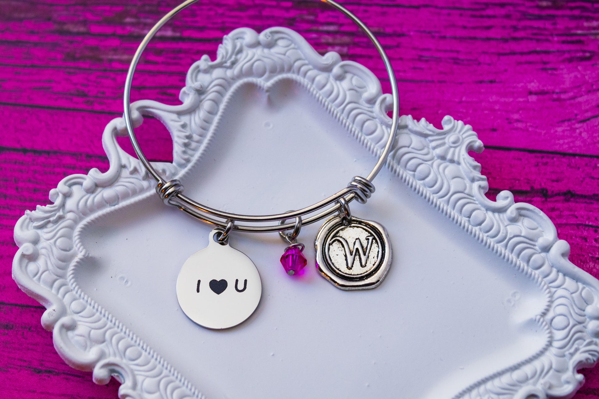 Visit the front page of my shop to see the various add on's available and upgrades. You will find a large range of available options from Stainless steel bangle and chain upgrades, to engraved charms, natural stones, pearls, extra crystals and initials. Everything you need to make your purchase totally unique