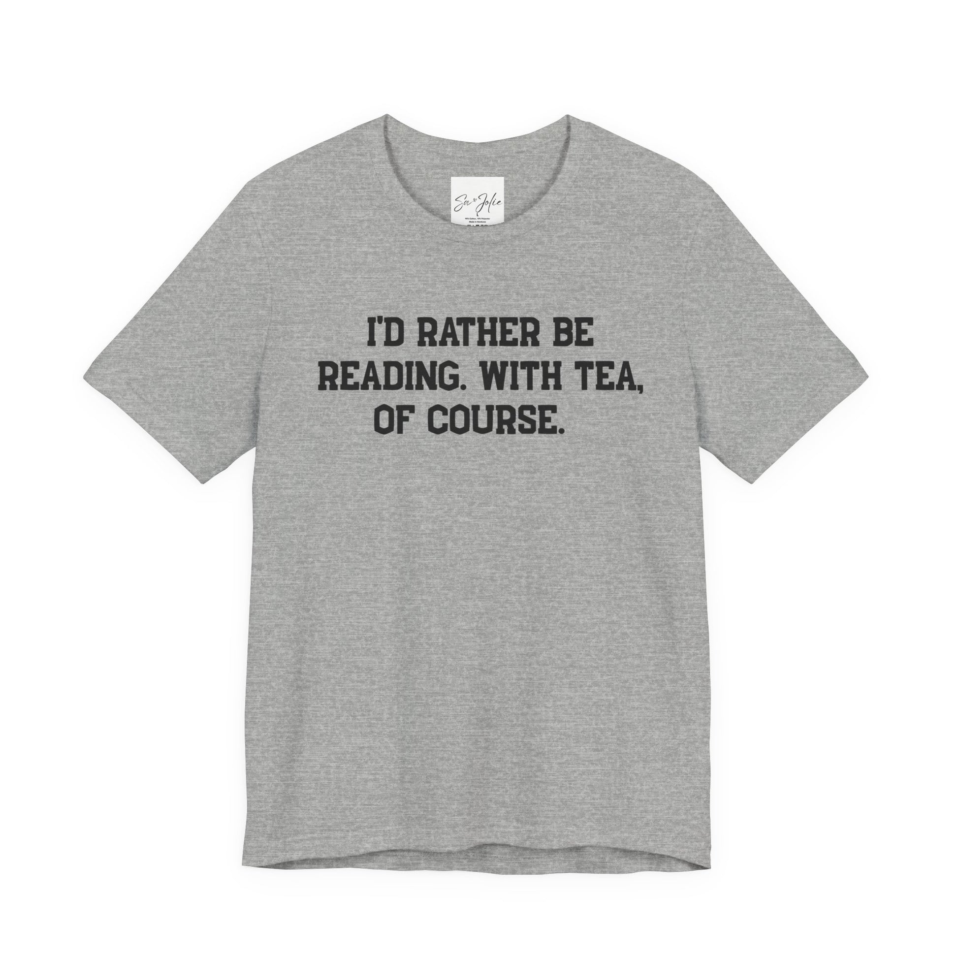 Reading Lover's Tee - "I'd Rather Be Reading with Tea, of Course" - Bookish Gift, Literary T-Shirt, Cozy Apparel, Perfect for Bookworms and Tea Lovers