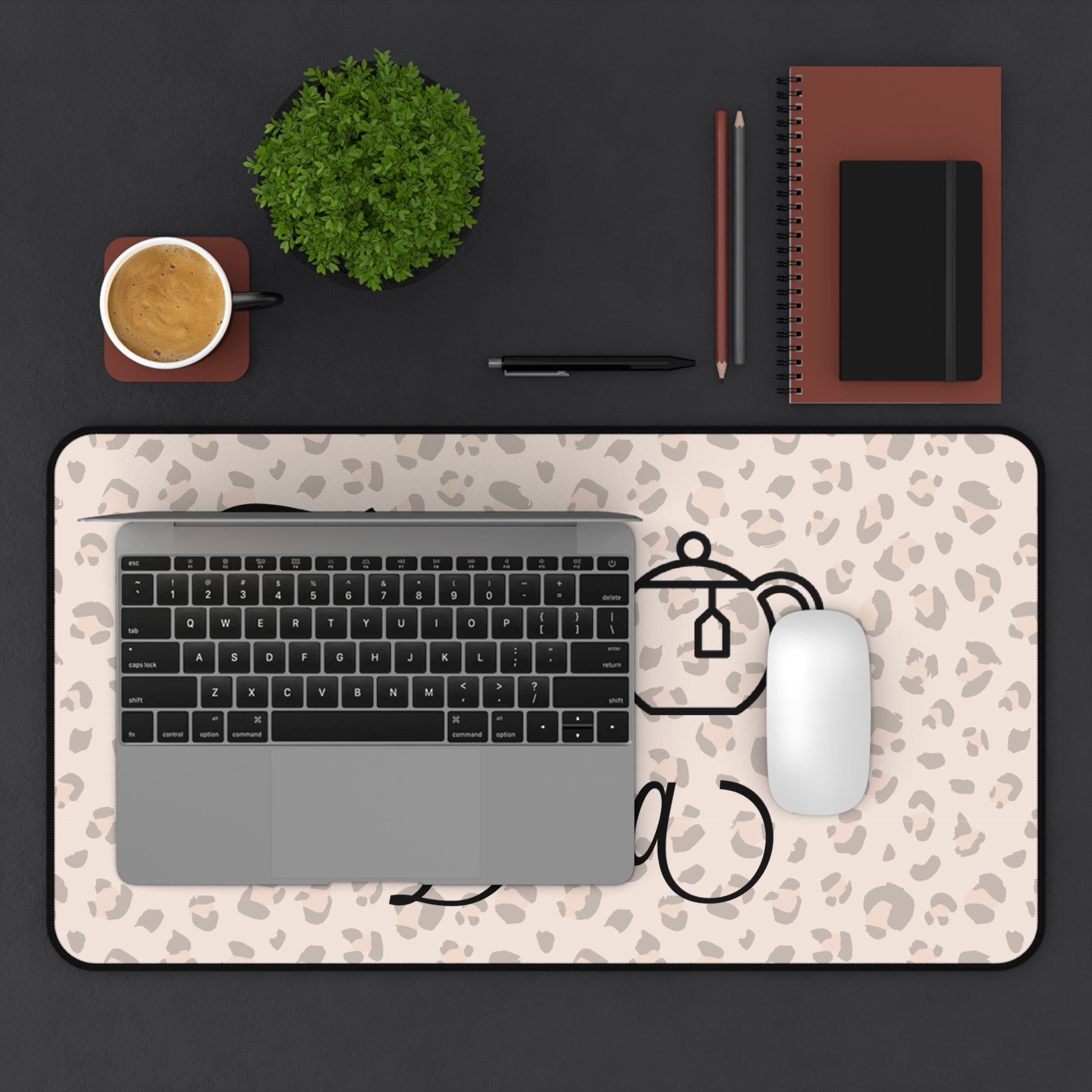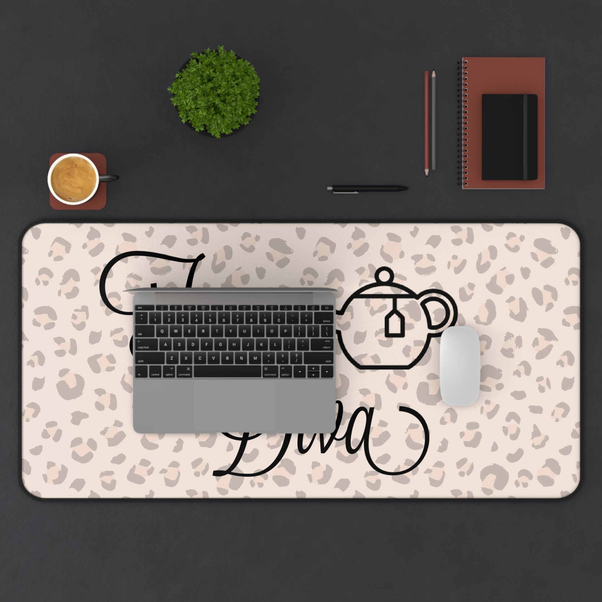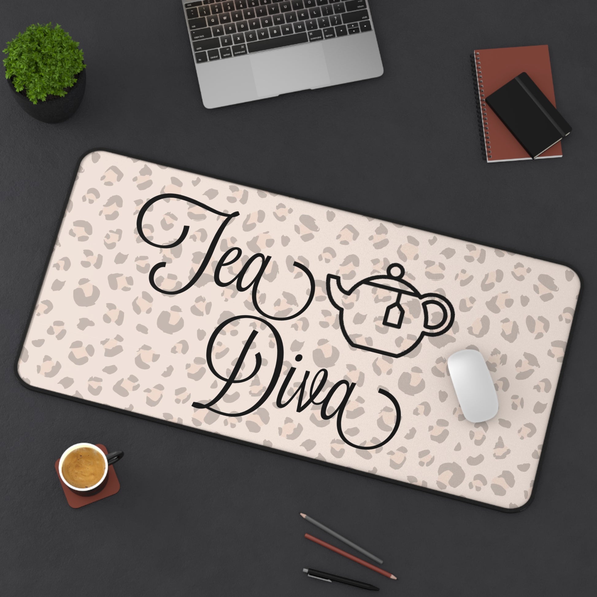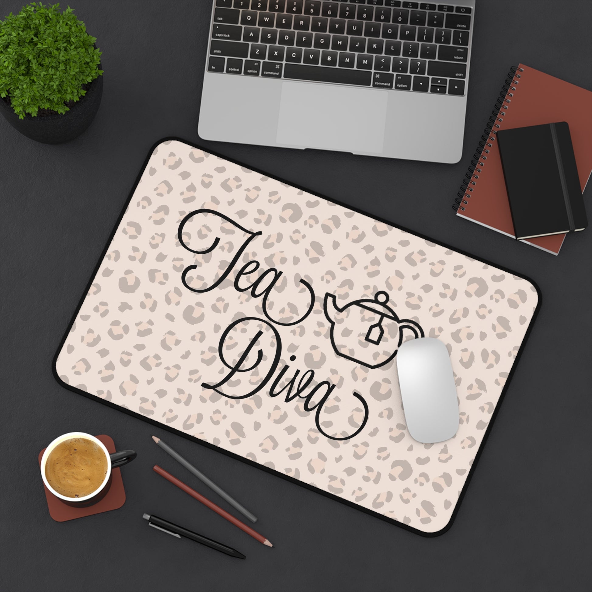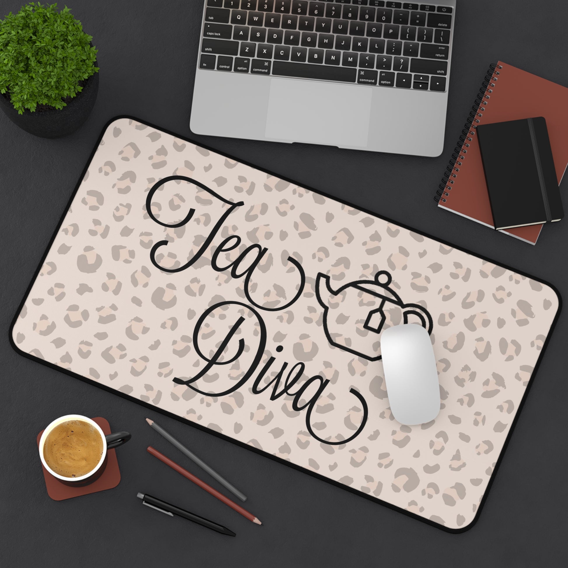 Tea Diva Desk Mat, Cute Mouse Pad, Animal Print Desk Decor, Tea Lover Gift, Office Accessory, Chic Workspace Decor