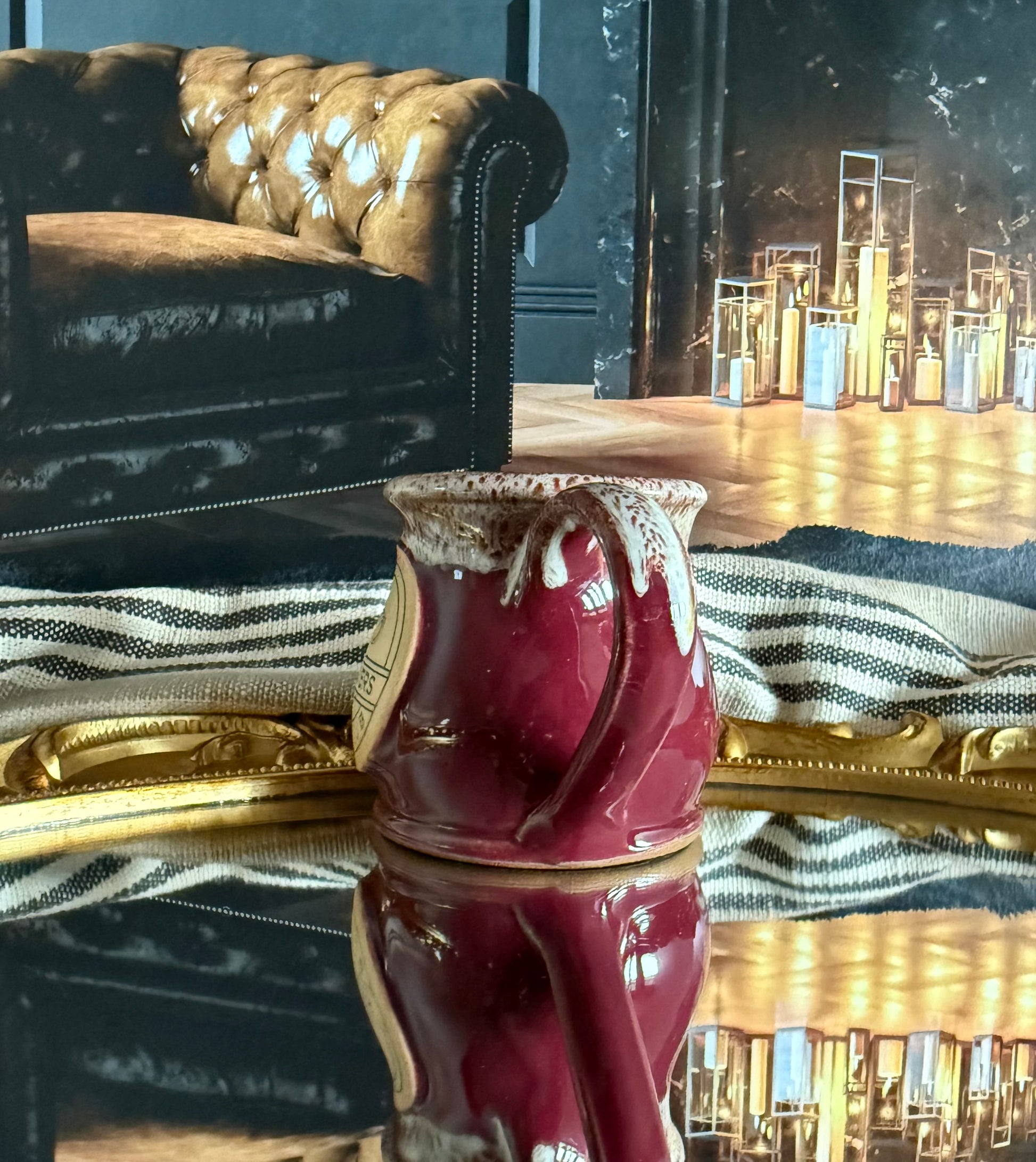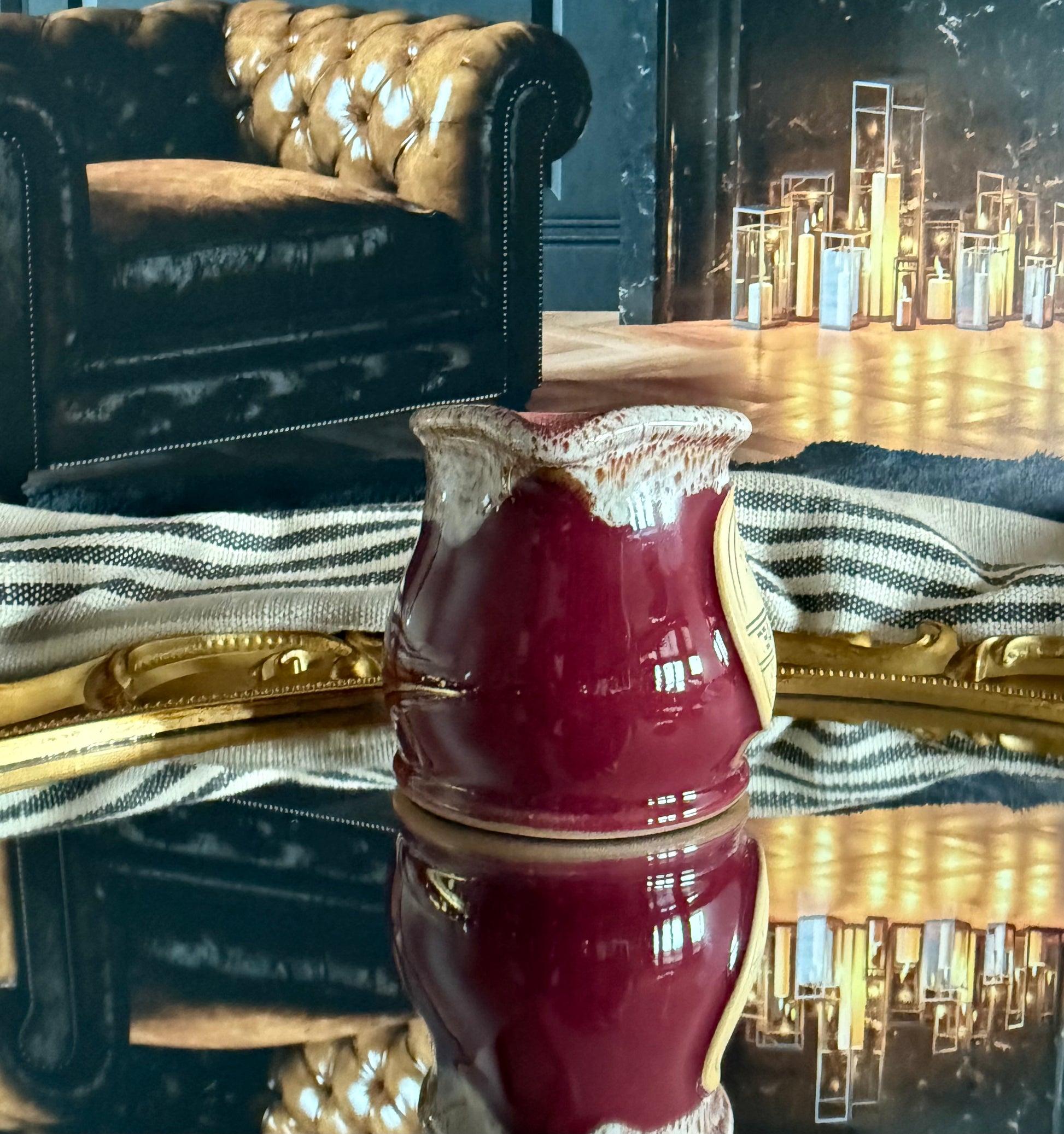 The Burgundy with Dijon & White Milk Tot brings warm, luxurious charm to your tea time. Its rich burgundy glaze, softened by golden Dijon tones and crisp white accents, creates a look that’s both timeless and refined. Burgundy evokes warmth, romance, and sophistication, making this petite piece a beautiful addition to any tea table.