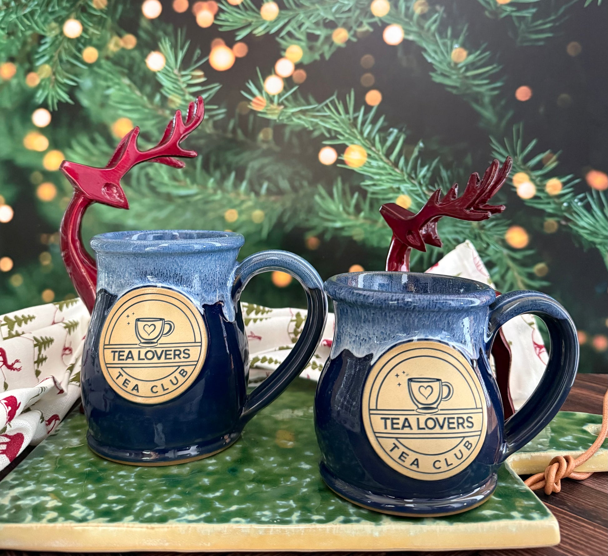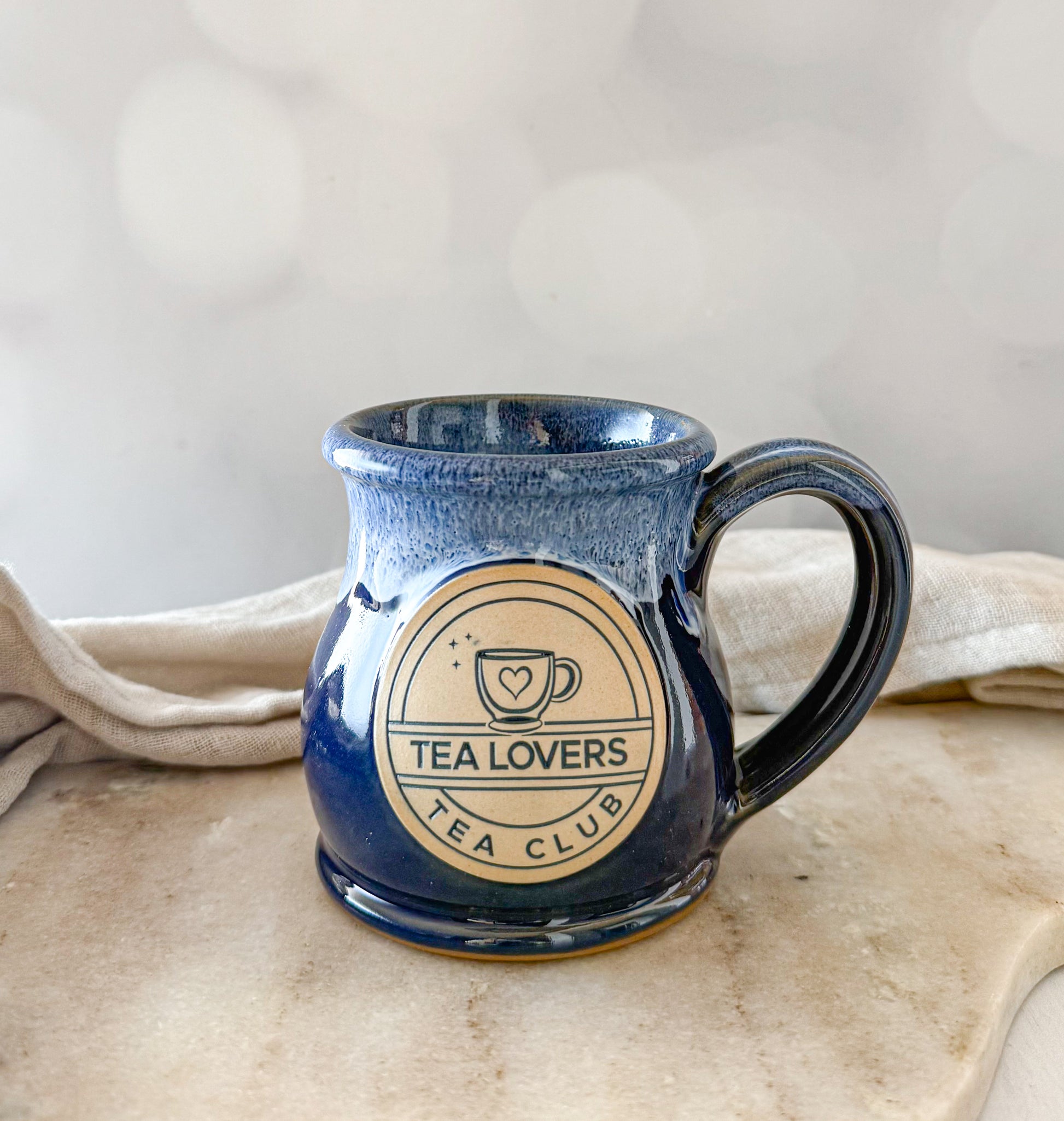 Tea Lovers Tea Club Round Belly Navy Mug With Powder Blue and White