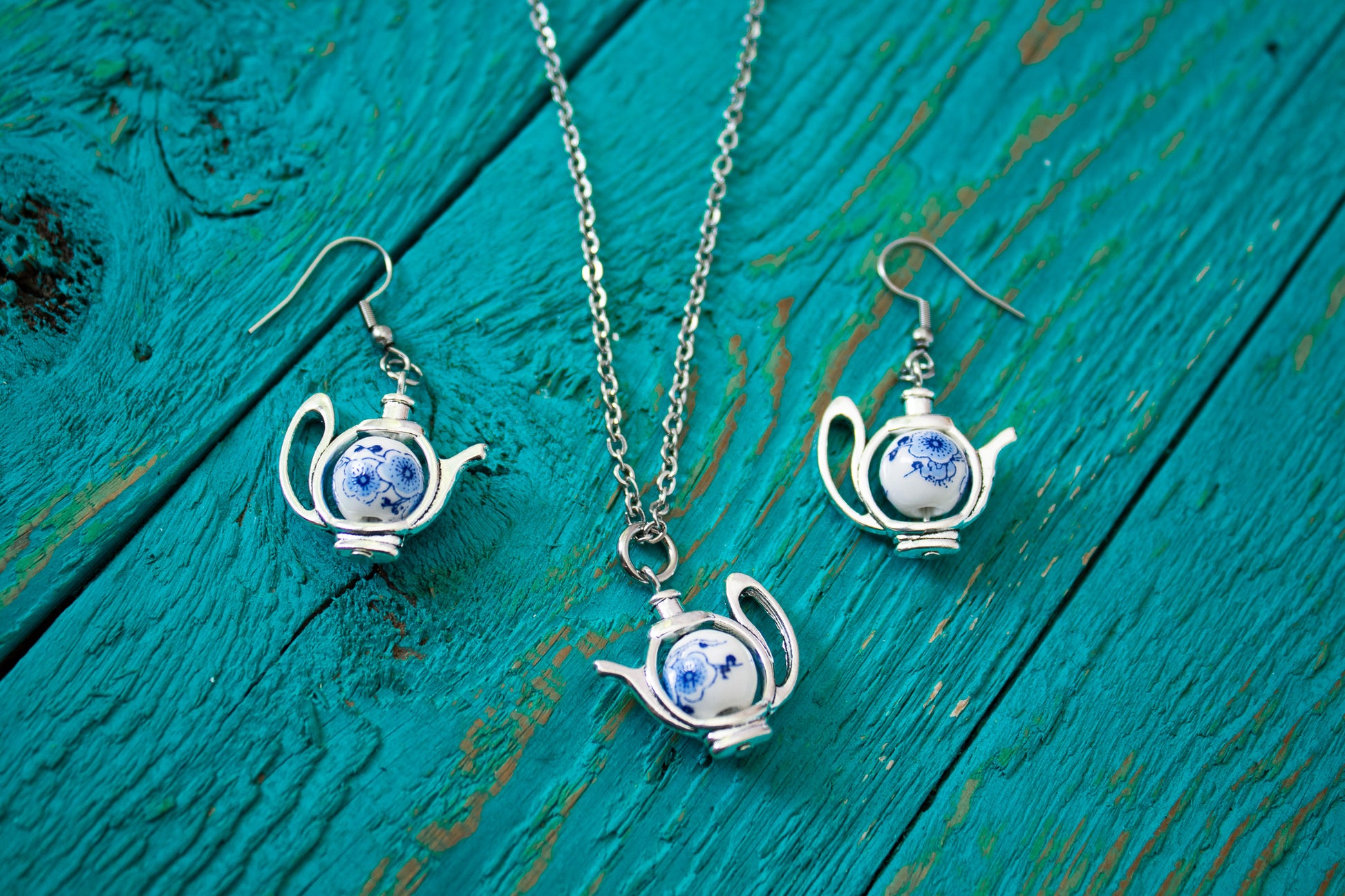 Teapot Porcelain Bead Jewelry Set – Earrings & Necklace